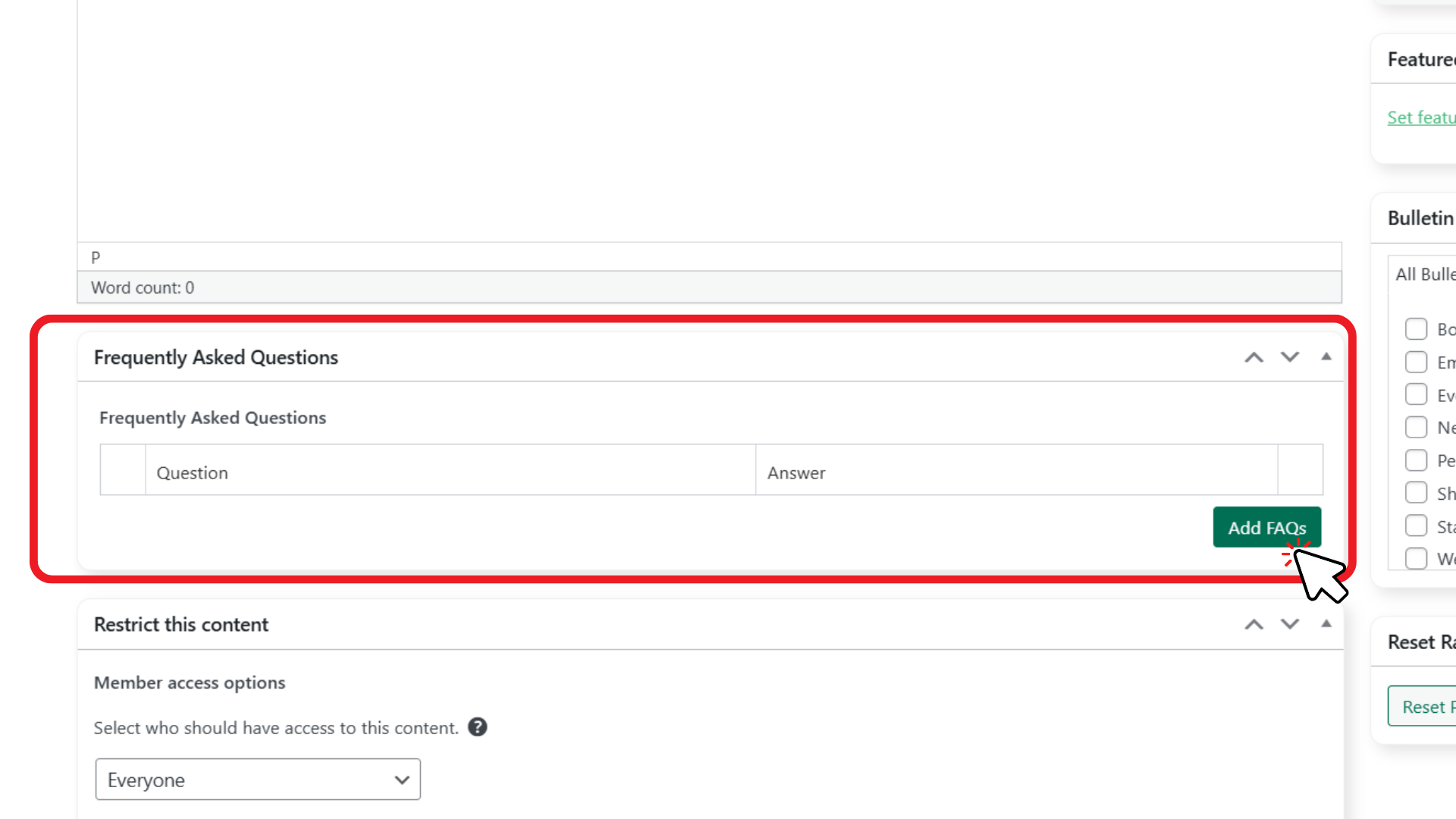 - Click Add FAQs to include frequently asked questions related to the bulletin.