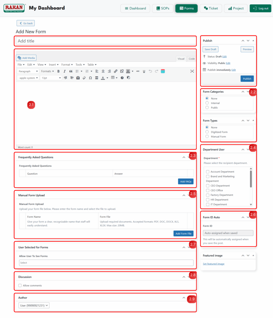 This guide provides IT Managers with step-by-step instructions on how to create and manage forms efficiently within the RAKAN Team Portal. By following this guide, IT Managers can ensure a structured approach to form creation, configuration, and deployment across departments with proper access controls and functionality.