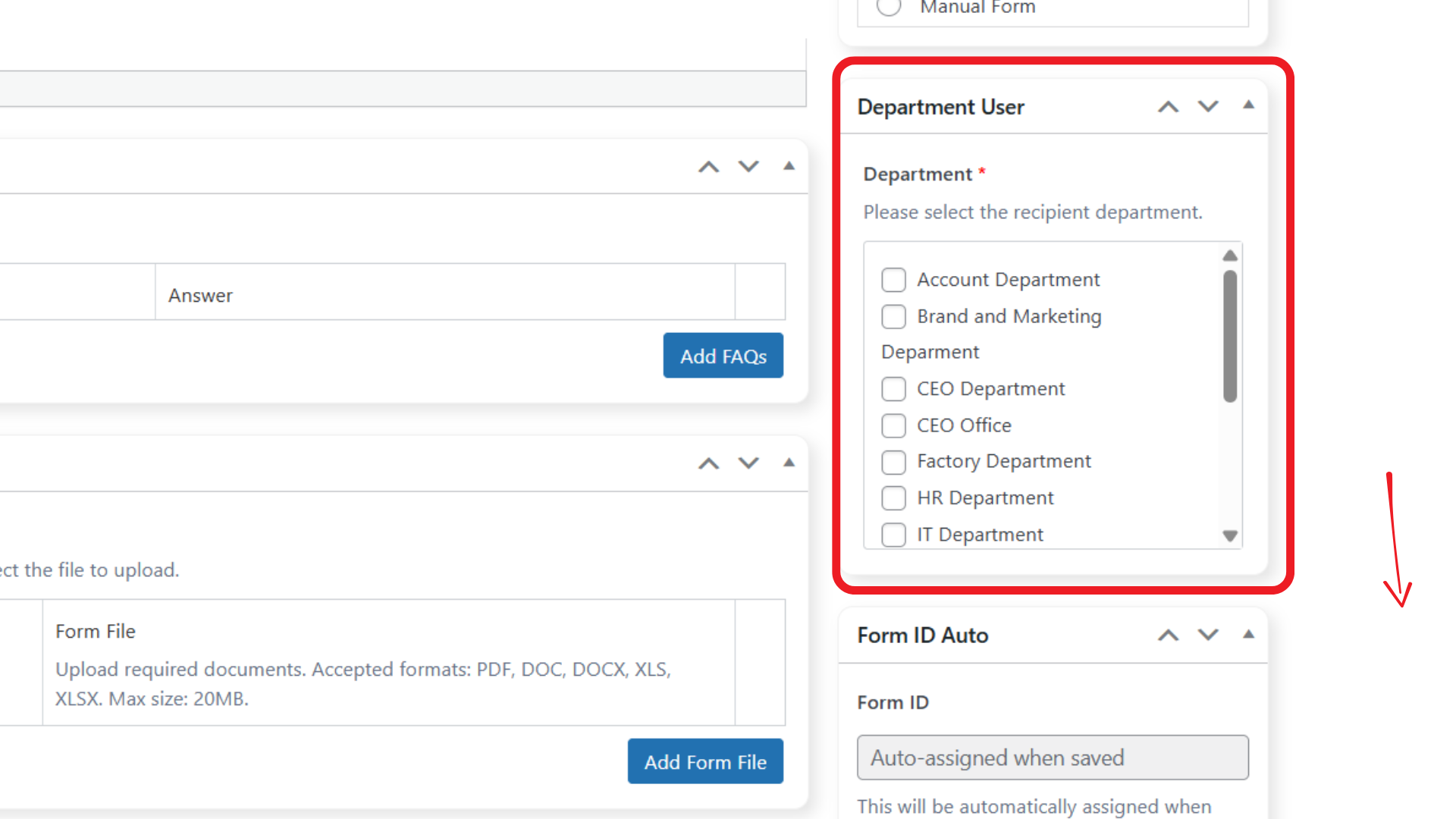 • Department Selection: Choose the target department(s) from the checkbox list.