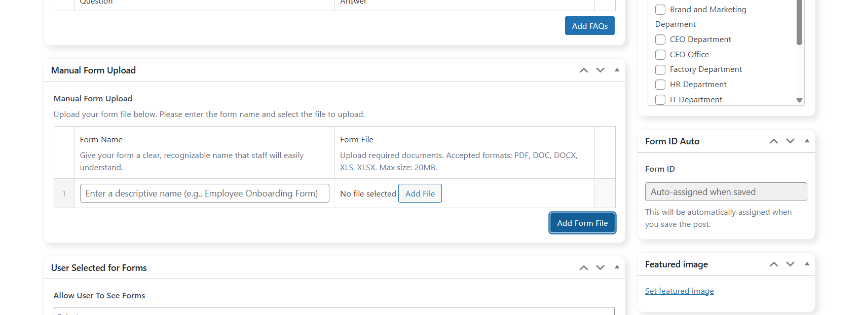 • User Selected for Forms: Allow designated users from other departments to access Internal forms.